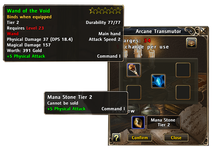 Til selve transmuteringen af dit item bruges 3 mana stone af samme Tier som den ønskede Tier.