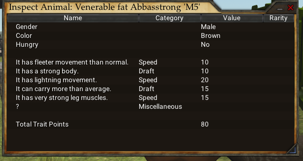 Heste kan have ekstra Traits som f.eks. giver ekstra speed.